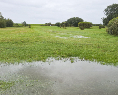Da laut unserem Regenmesser (keine amtliche Messung) in den letzten 20 Stunden 30 Liter Regen gefallen sind, bleibt der Platz auch heute gesperrt. Dazu kommt ja noch der Sturm.