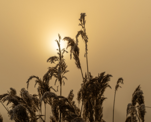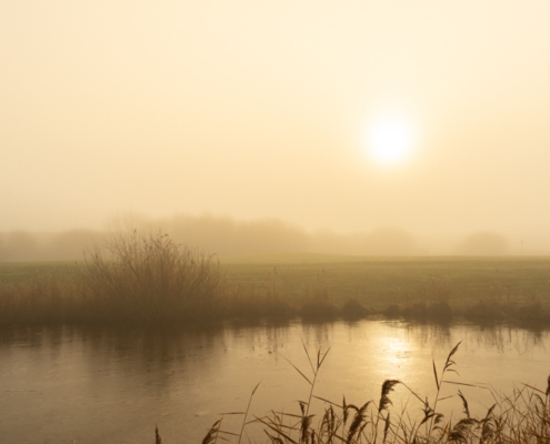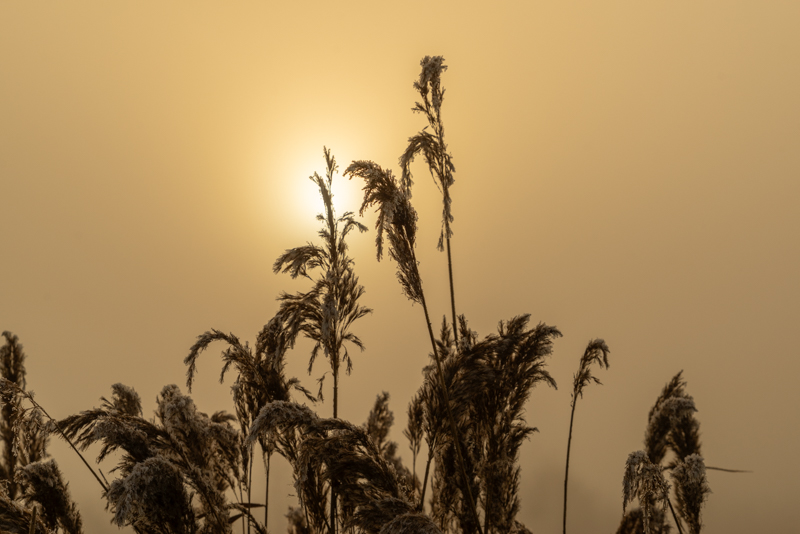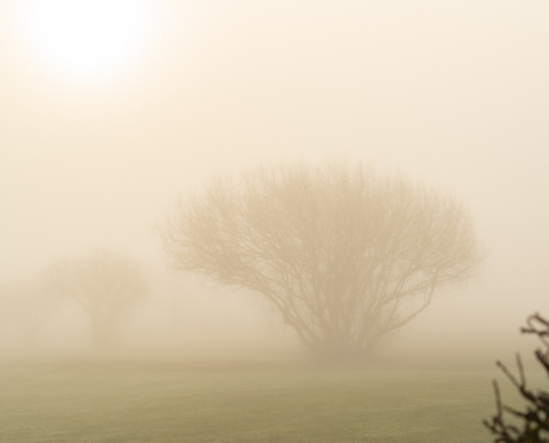Heute Vormittag lag bei leichtem Frost ein dichter Nebelteppich über der Insel. Der blaue Himmel war direkt über uns wohl zu erahnen, hier unten war jedoch keine Sicht.